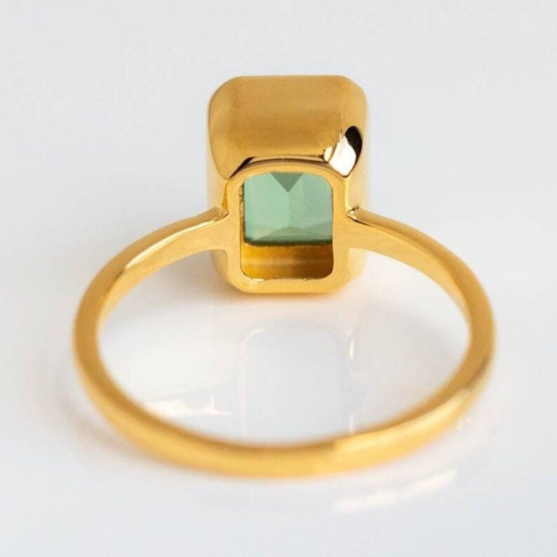 Emerald Engagement Ring 4ct Emerald Cut 14K Gold Engagement Ring Cluster Ring CZ Diamond Bridal Ring Promise Ring Anniversary Gift