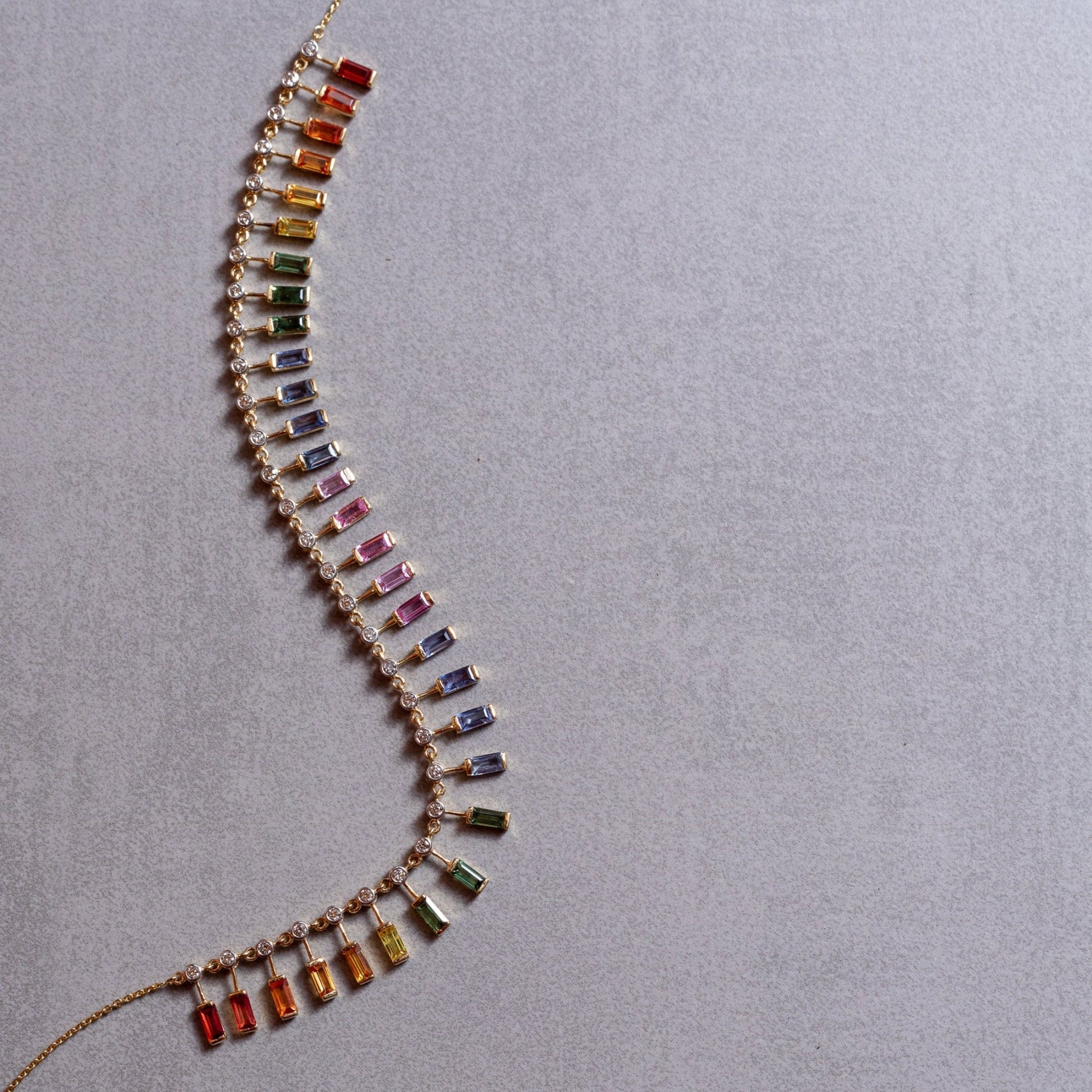 Natural Multi Sapphire Baguette Cut Necklace, Rainbow sapphire choker necklace, Natural rainbow Necklace, Gift For Her, Christmas Gift