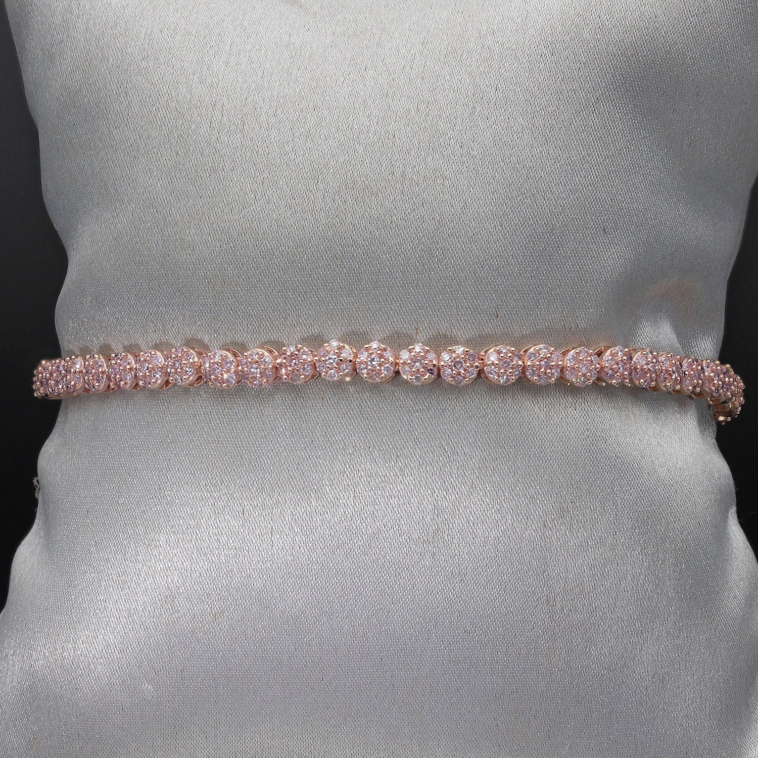 Rose Gold Pink Diamond Floral Tennis Bracelet: Sterling Silver, 2.0 ctw