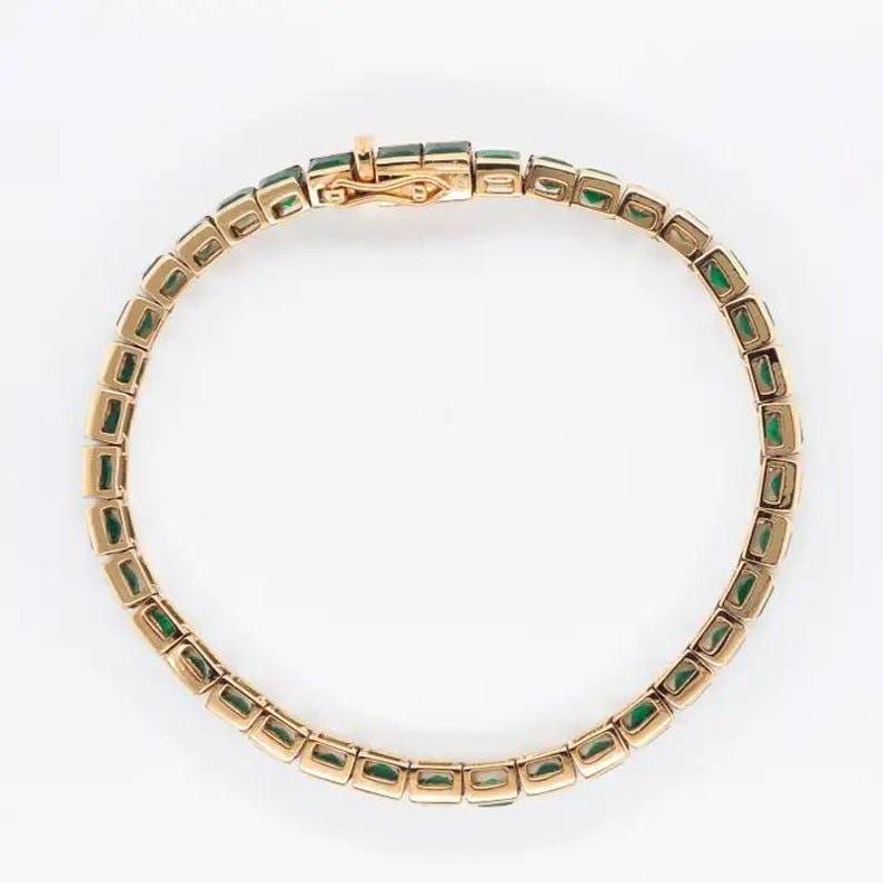 Tennis Bracelet 4mm Square Cut Emerald Gemstone Bracelet, 14k Yellow Gold Emerald Sapphire Tennis Bracelet, Bezel Set Tennis Bracelet