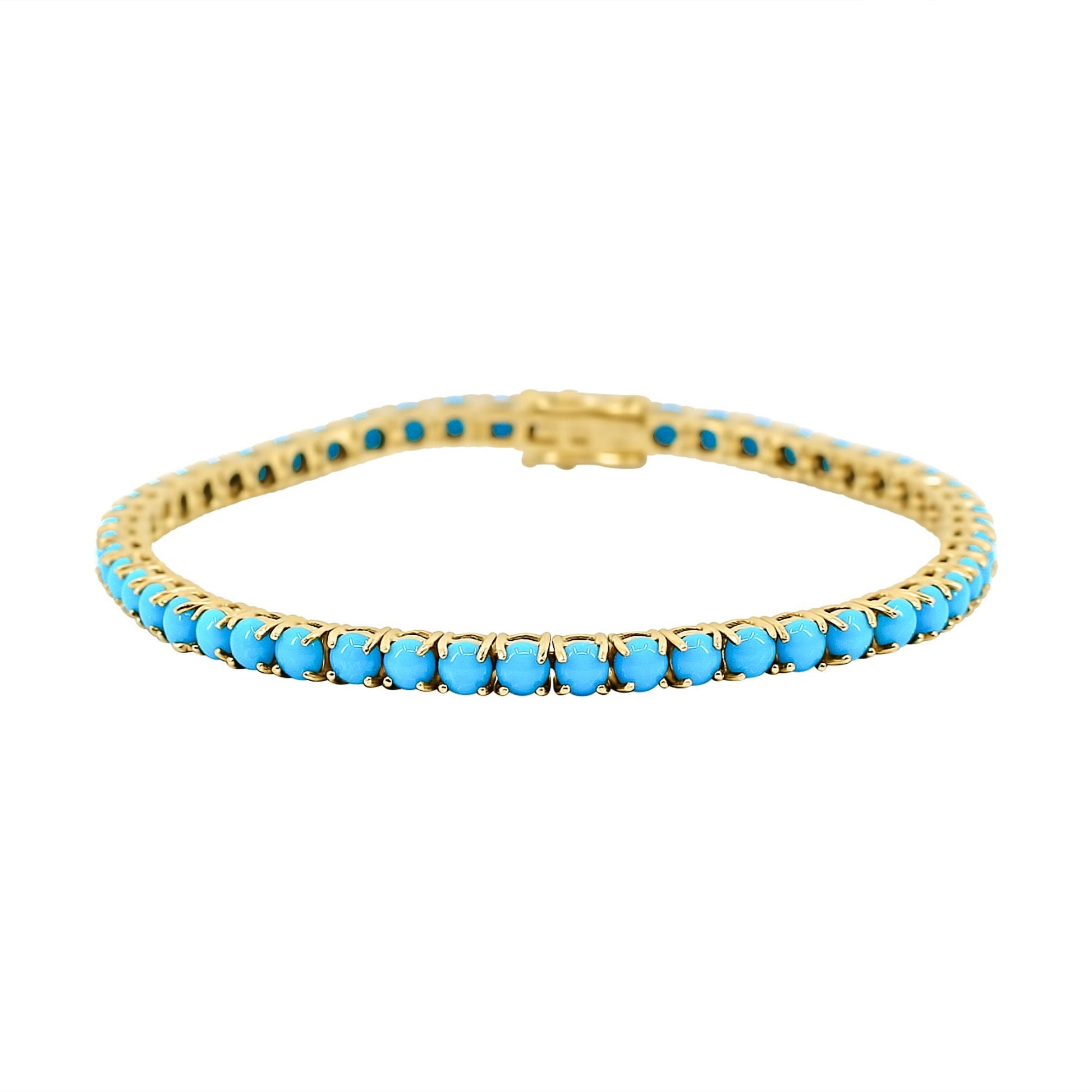 Turquoise 14K Gold plated Tennis Bracelet Round turquoise tennis bracelet gold | Art Deco vintage turquoise bracelet gold turquoise bracelet