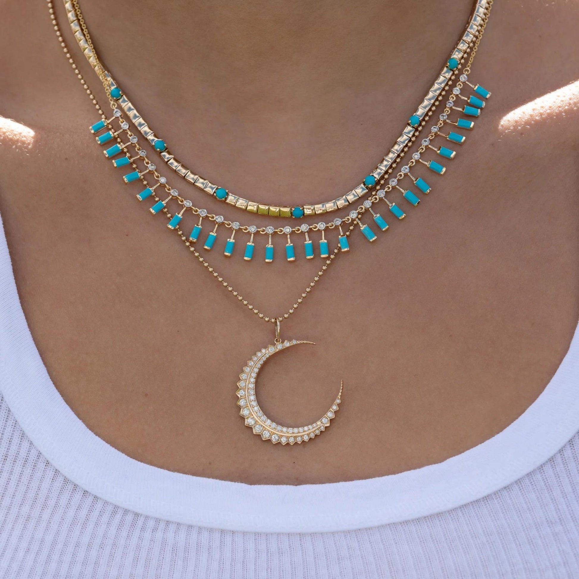 Turquoise Baguette Choker Necklace: 925 Sterling Silver, 10k/14k Gold